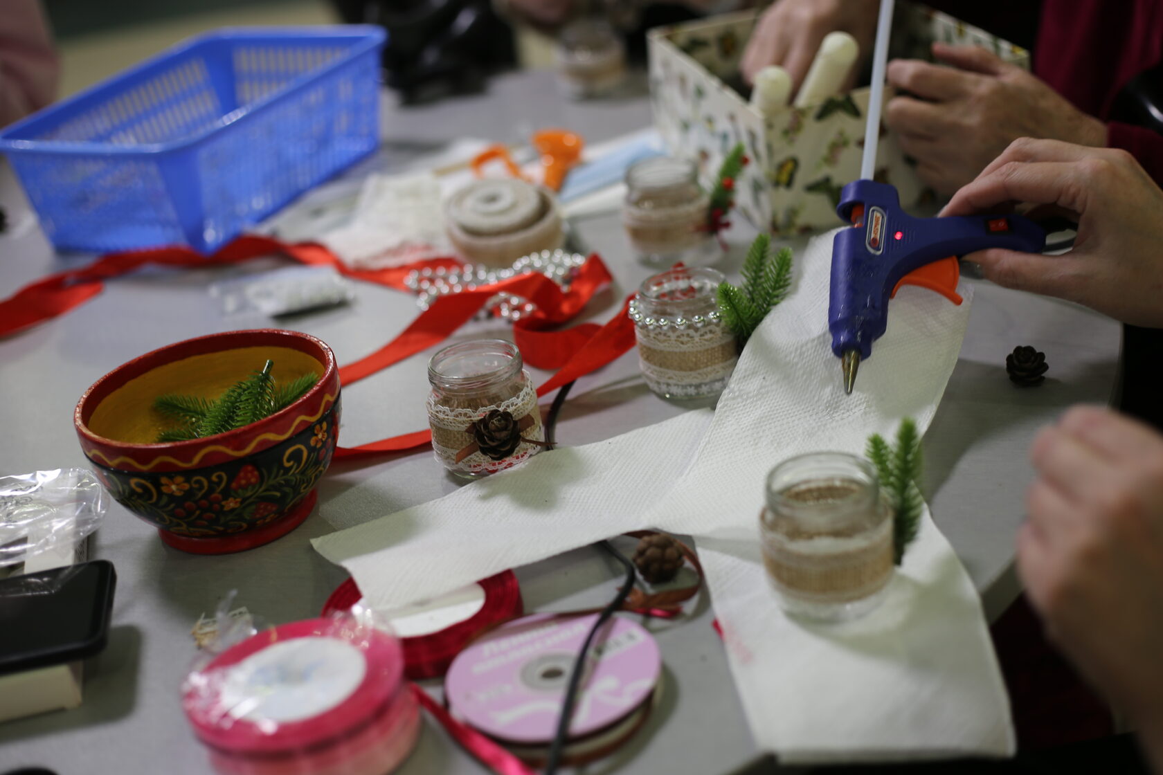 Самым удивительным открытием стал тот факт, что для создания красоты не нужны дорогие материалы. Волшебство рождалось из самых обыденных вещей: небольших баночек, которые найдутся дома у каждого, кружев, бусин, старых новогодних игрушек и веточек от искусственной ёлки. Под руководством наших специалистов Светланы Фокиной и Марины Волковой, эти простые элементы в руках участников превращались в изящные, уникальные подсвечники ручной работы.