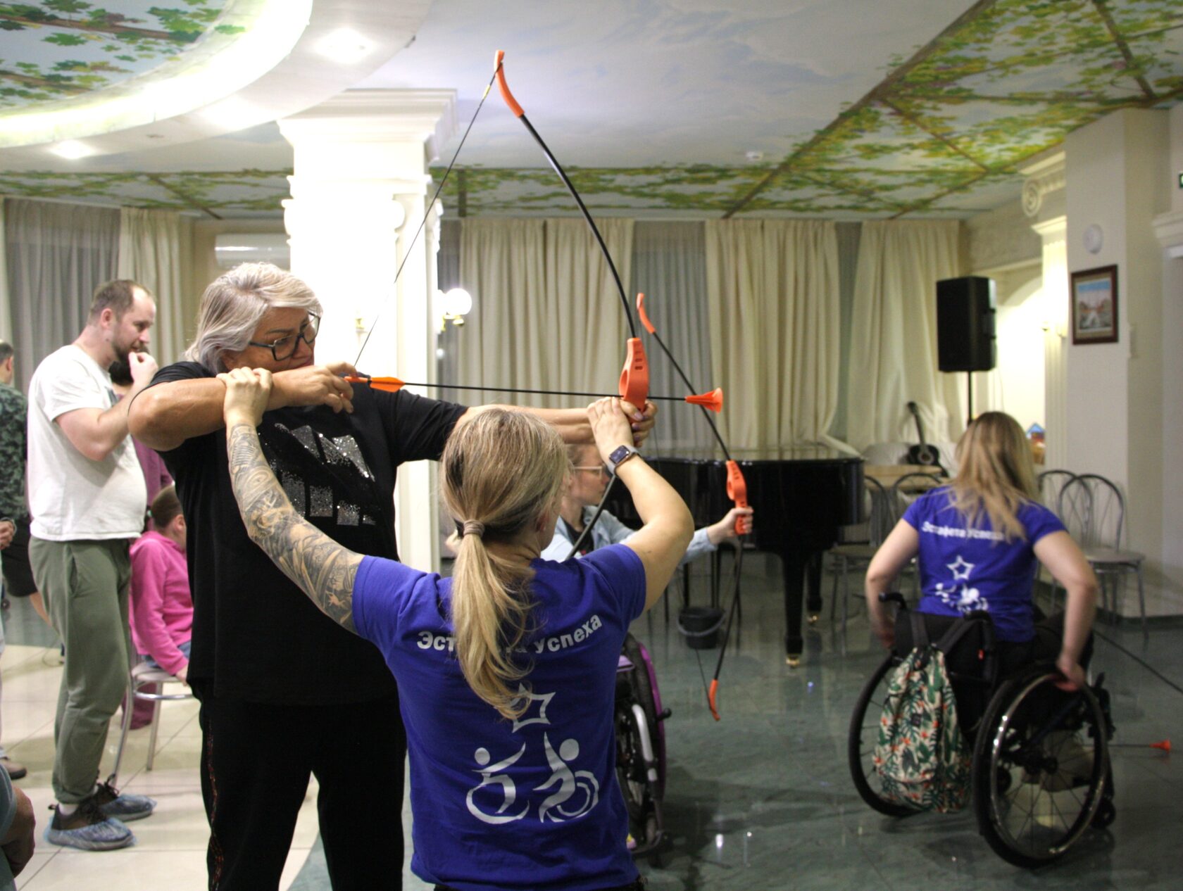 В тот вечер в нашем зале досуговых мероприятий зале царила особая атмосфера: общение, смех, азарт и полное отсутствие границ. И малыши, и взрослые пробовали себя в адаптивном фитнесе, сражались на рапирах и метко стреляли из лука. Оказалось, что это очень увлекательно.