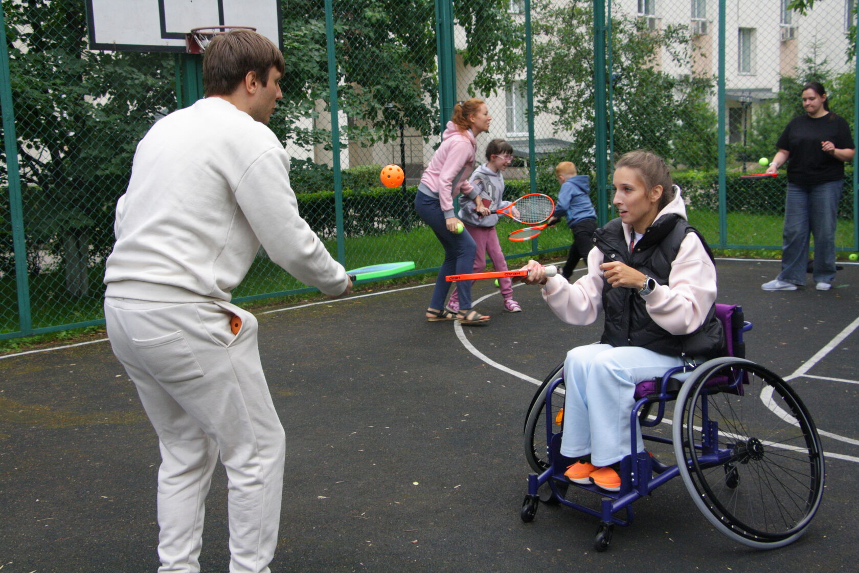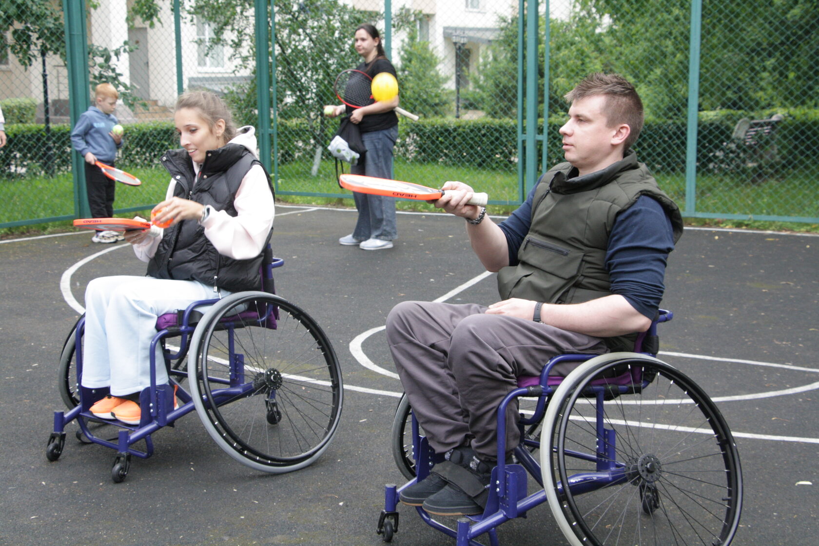 Для многих участников занятия это был новый опыт – теннисные ракетки они взяли в руки впервые. Тренеры терпеливо объясняли правила, показывали, как правильно держать инвентарь и бить по мячу. Игра проходила в специальных спортивных колясках — устойчивых, быстрых и маневренных, созданных для комфортной и эффективной игры независимо от физических возможностей.